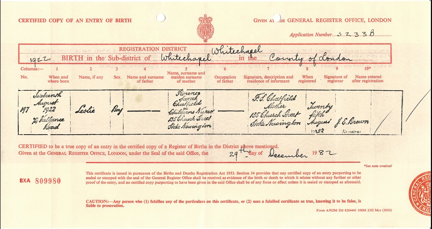 Birth CHATFIELD Leslie 1922 Aug.jpg![]() |