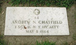 | Andrew Murray Chatfield shows up on 1850 census as "Murray", b: abt. 1840; and again in 1860 census as Andrew M. b: abt. 1840. Not found after 1860 census record. CHATFIELD, ANDREW M. Age, 23 years. Enlisted, October 8, 1863, at Auburn, New York; mustered in as private, Co. D, December 7, 1863, 16th heavy artillery to serve three years; promoted first sergeant, died of disease, May 8, 1864, at Fort Williamson, Va.; prior service, Co. A, Third New York Artillery. Note: Co. D, 16th NY Hv Arty ----- Grave at Yorktown National Cmtry., Yorktown, York Co., Virginia, USA Find A Grave Memorial# 8298849 and Memorial at Fleming Rural Cmtry., Cayuga Co., New York, USA Find A Grave Memorial# 67077101 ----- USA General Index to Pension Files, 1861-1934 Name: Andrew M Chatfield Event Type: Pension Event Date: 1880 Beneficiary's Name: Hannah L Chatfield [His mother] Affiliate Publication Title: General Index to Pension Files, 1861-1934 Affiliate Publication Number: T288 GS Film number: 540836 Digital Folder Number: 005079807 Image Number: 02835 ----- USA Civil War and Later Pension Index, 1861-1917 Name: Andrew M. Chatfield Military Rank: Corp. Military Company: F Military Regiment: 3 State: New York Military Unit: Light Artillery Event Date: 08 Apr 1880 Affiliate Name: National Archives and Records Administration Affiliate Publication Number: T289 Affiliate Publication Title: Organization Index to Pension Files of Veterans Who Served Between 1861 and 1900 Affiliate Record Type: Civil War Pensions |